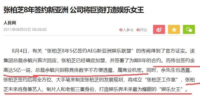 8. 这一主张并非无迹可寻。当年媒体广泛报道,张柏芝确实在2011年与AEG签订独家合约,彼时余毓兴还公开表示要倾力打造她为新一代“娱乐女王”,声势浩大。