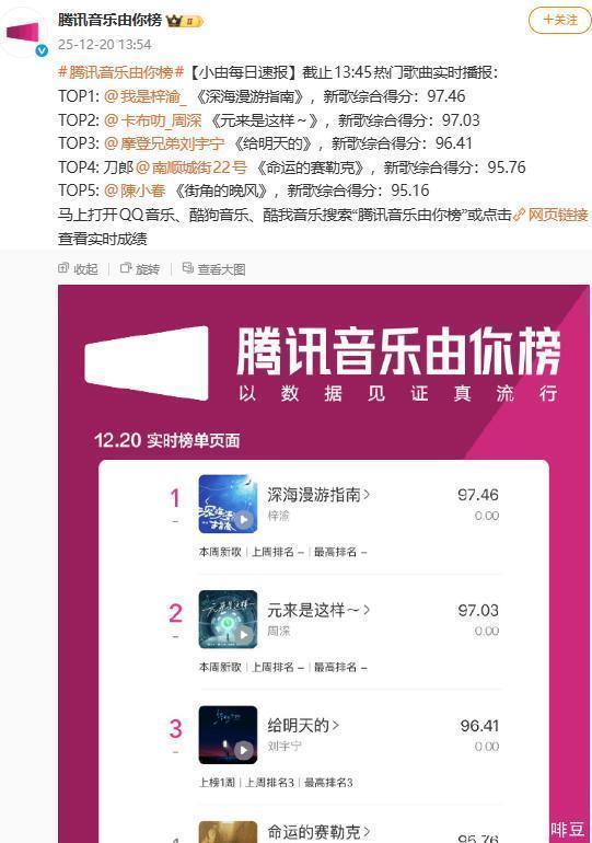 如今他在华语乐坛中地位仍不可替代,热度也只增不减。 12月20日,他的新歌发布后,就直接冲上热门歌曲榜。